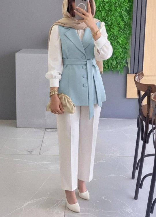 اندازه: قد وست ۷۰ قد شومیز۵۵،قد آستین۶۰ ،دور سینه ۱۱۰ ،قد شلوار ۹۵